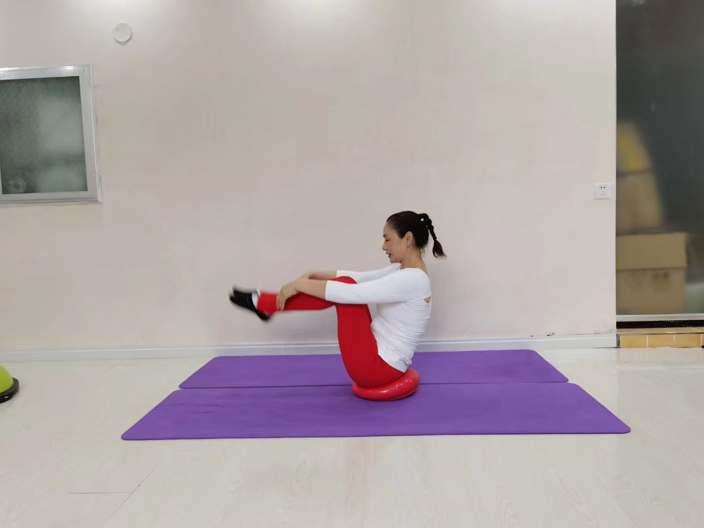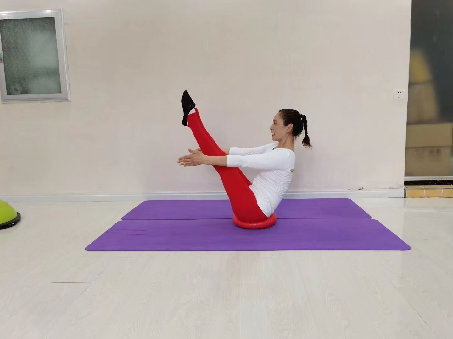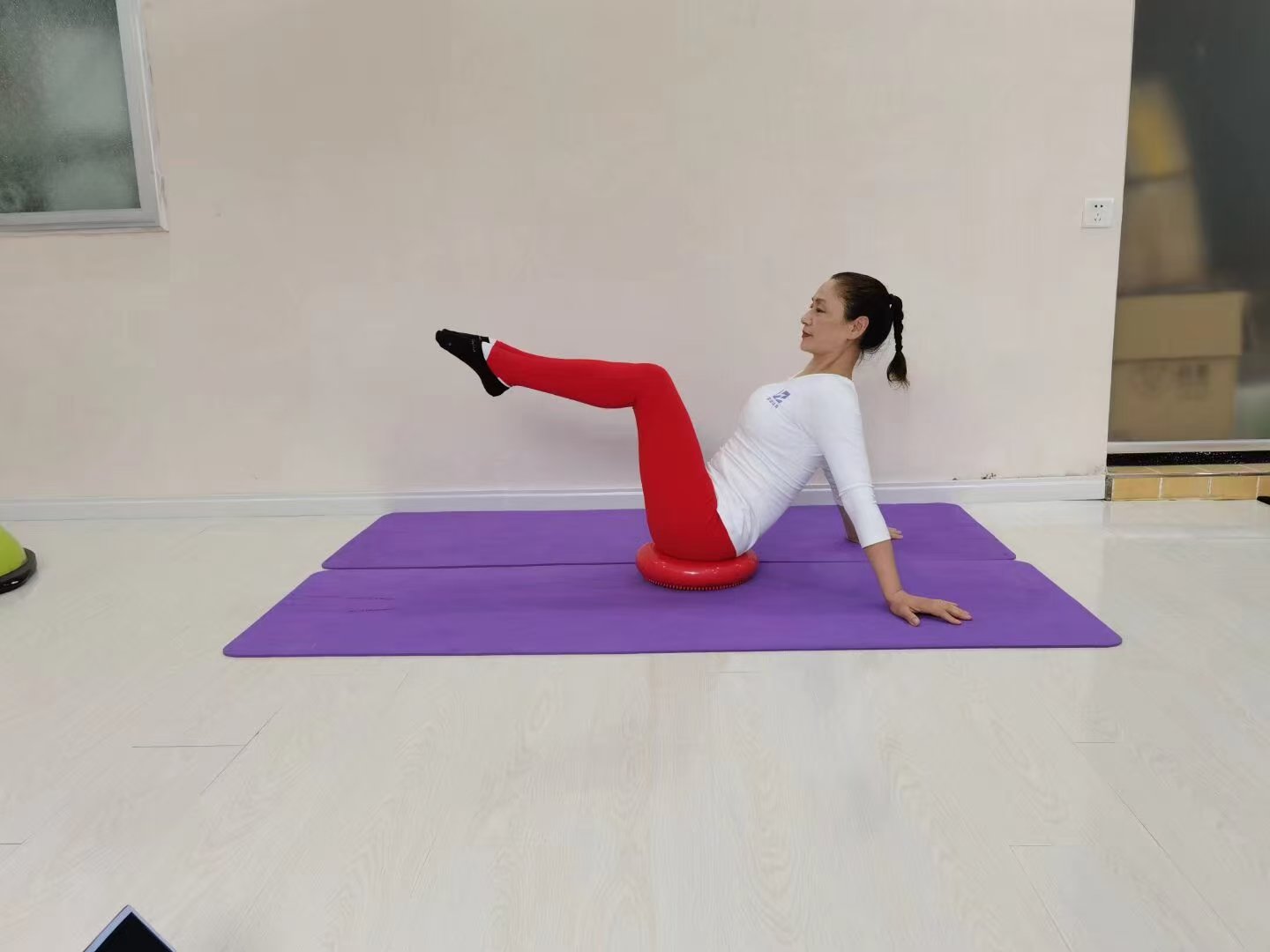 波速球两面都可以进行练习,初级会员可以降低动作的强度,特别是腹部不会主动发力的学员可以通过波速球上平稳等动作练习对核心进行激活,后在进行核心训练,可以提效率。也可以增加课程的趣味性,让练习者在欢乐的氛围中快速的减脂纤体!